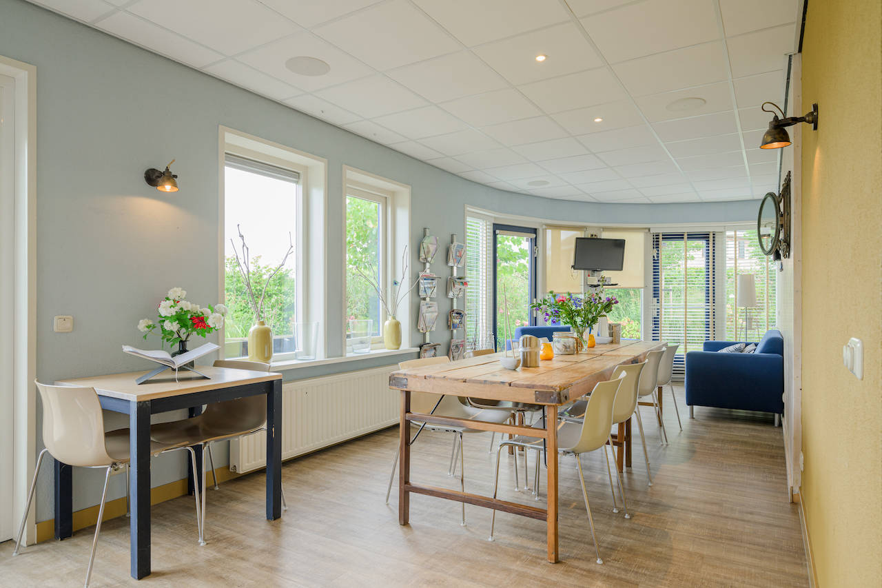 Als je met een grote groep op pad gaat, is ruimte onmisbaar – en die vind je hier volop. Het Familiehuis biedt plek aan maar liefst 20 personen, verdeeld over 8 slaapkamers en 7 badkamers. De woonkamer is ruim en sfeervol ingericht, met genoeg plek om samen te borrelen of een spelletje te doen. De grote eettafel nodigt uit tot lange avonden met goed eten en gesprekken die eindeloos doorgaan. De keuken is volledig uitgerust zodat je makkelijk voor de hele groep kunt koken, maar wie wil kan natuurlijk ook de lokale horeca in duiken. De tuin aan het water is perfect voor een ontbijt in de zon of een ontspannen middag met uitzicht op de langsvarende bootjes.
