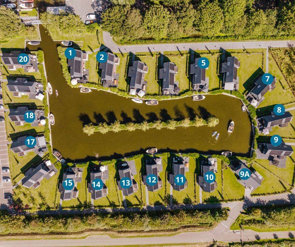 De woningen verschillen in indeling: er zijn varianten met een extra slaapkamer op de begane grond en varianten met een ruime living en kookeiland. Alle villa’s hebben een terras aan het water en bieden plek voor een sloep of kleine boot.
