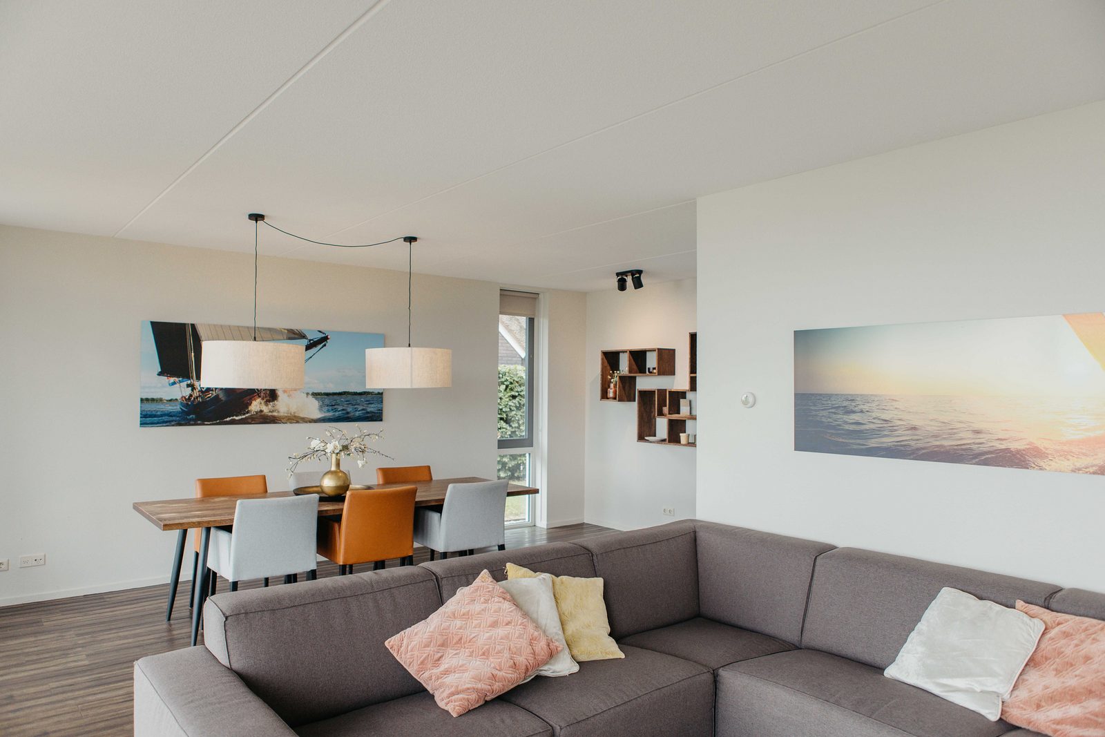 Als je hier binnenkomt, valt meteen het licht op dat door de grote raampartijen naar binnen stroomt. De woonkamer voelt ruim en warm aan, met een comfortabele zithoek en een serre waar je tot laat in de avond kunt zitten. De openslaande deuren brengen je naar het terras met tuinmeubels, waar je in de ochtendzon geniet van koffie en later op de dag van een borrel aan het water. Rondom de villa ligt een grote tuin met volop privacy en een eigen aanlegsteiger — ideaal als je een bootje meeneemt of gewoon lekker aan de waterkant wilt zitten. Binnen zorgt de vloerverwarming voor extra comfort, ook op koelere dagen.