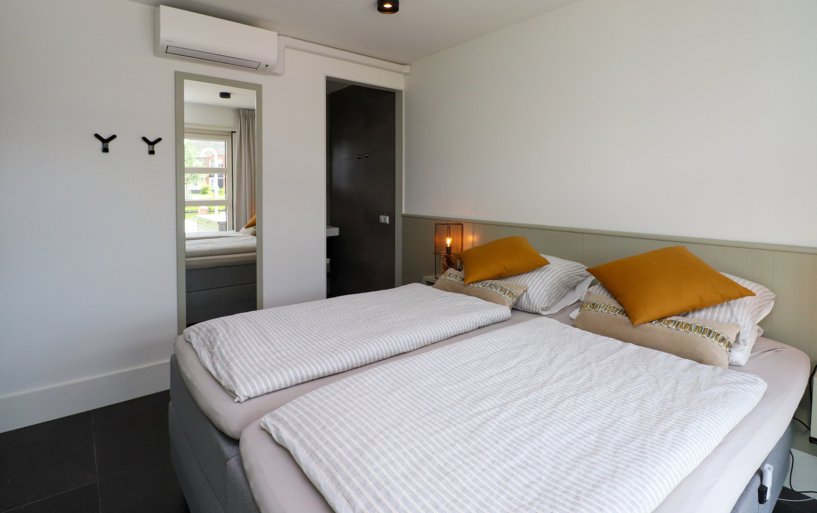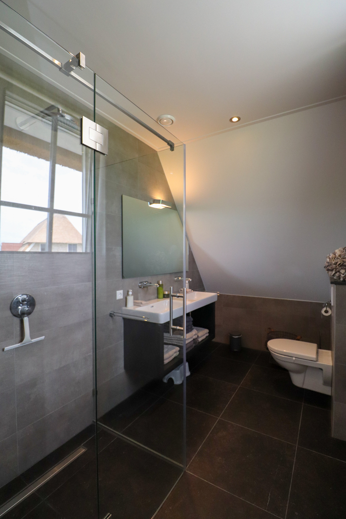 Op de eerste verdieping bevinden zich vier comfortabele slaapkamers, allemaal met Smart TV en eigen douche of wastafel. Op de overloop wacht een echte wellnessverrassing: een Finse sauna! Hier kom je helemaal tot rust na een dag op het water of een fietstocht langs de Friese meren. Op de tweede verdieping zijn nog twee extra slaapkamers met elk twee eenpersoonsbedden – ideaal voor kinderen of logees.