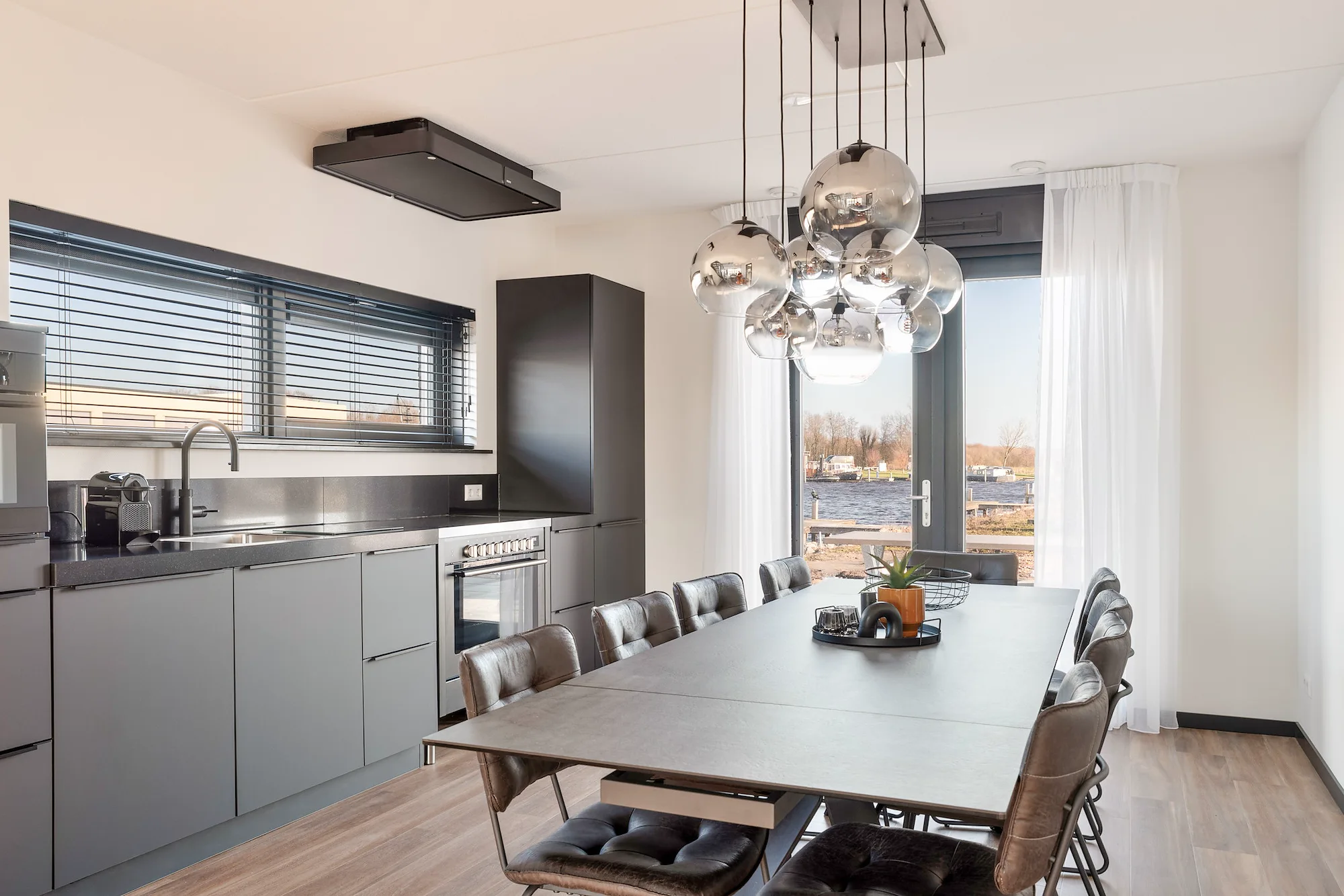 Als je met familie of vrienden in Watervilla Roerdomp Wellness Plus 10 verblijft, heb je echt de ruimte. De villa is geschikt voor 10 personen en verdeeld over twee verdiepingen. Op de begane grond vind je een lichte woonkamer met een comfortabele zithoek, smart-tv en soundbar, perfect voor een gezellige filmavond. De open keuken is modern ingericht met onder andere een kokendwaterkraan, Nespresso en oven – ideaal om samen uitgebreid te koken. Handig: er is één slaapkamer met eigen badkamer op de begane grond, dus ook fijn voor wie minder goed ter been is. Boven liggen nog vier slaapkamers, allemaal met boxsprings en meerdere badkamers, waarvan twee en-suite. Zo heeft iedereen voldoende privacy.