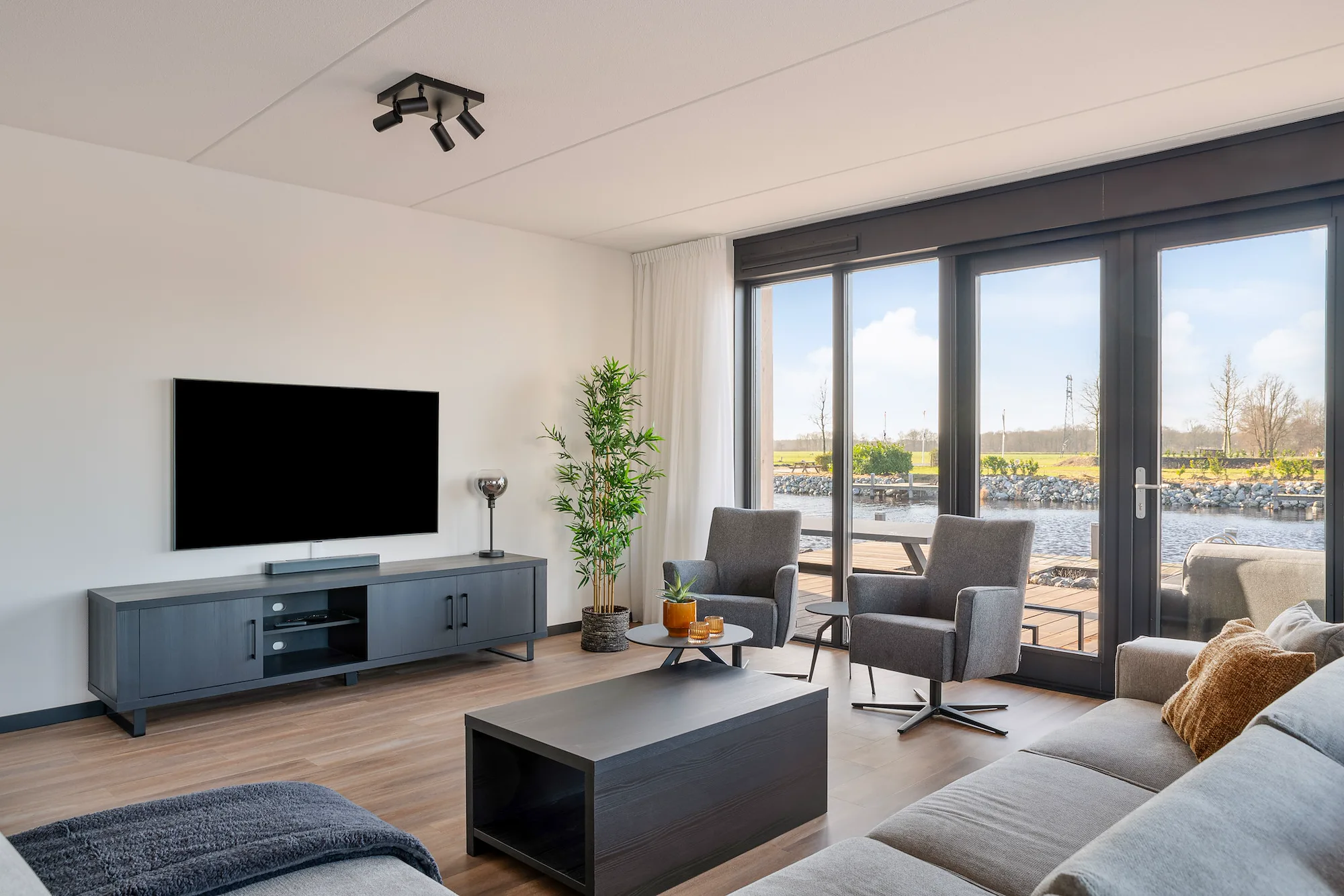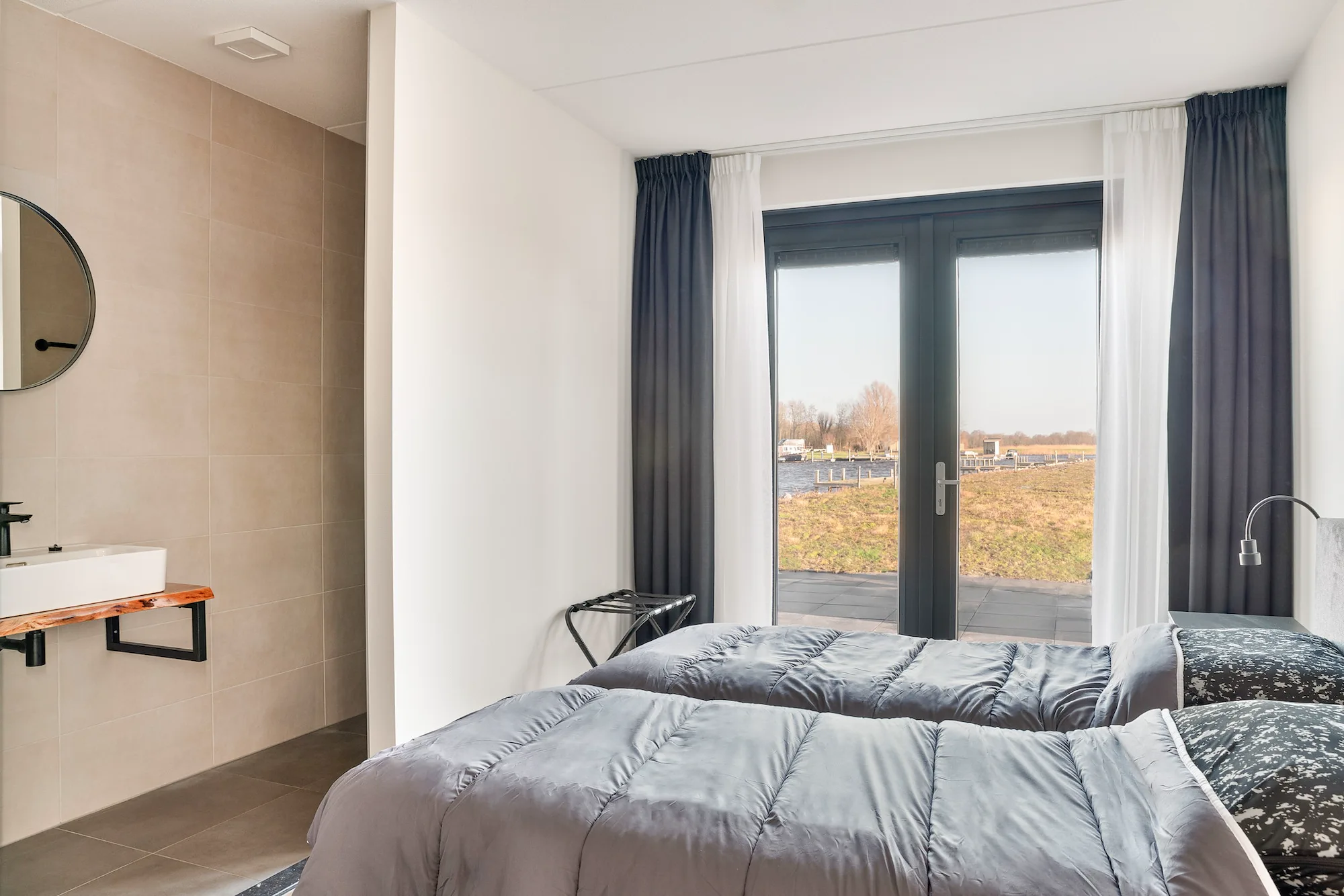 Watervilla Roerdomp Wellness Plus 10 op Summio Waterpark Zwartkruis is een heerlijke plek voor een ontspannen familievakantie aan het water! Deze royale villa ligt direct aan de binnenhaven en combineert ruimte, comfort en luxe wellnessfaciliteiten met het sfeervolle Friese buitenleven. Je geniet hier van een buitenbubbelbad met uitzicht over het water, een privé sauna en meerdere terrassen waar je tot in de late avonduren buiten kunt zitten. En het mooiste? Vanaf je eigen aanlegsteiger vaar je zo het Bergumermeer op!