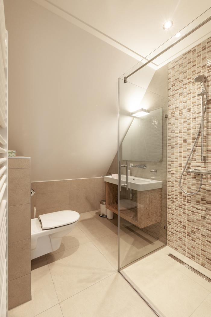 Boven vind je drie slaapkamers, allemaal voorzien van boxspringbedden, voldoende kastruimte en een smart-tv waarop je je eigen streamingdiensten kunt gebruiken. Een bijzonder detail is de tweepersoons bedstee – knus en geliefd bij jong én oud. Er zijn drie moderne badkamers, waarvan één met een heerlijke Sunshower die zowel infrarood- als UV-licht combineert. Verder is er een apart toilet en een handige wasruimte met wasmachine, droger en extra koelkast. Overal zijn horren aanwezig en de villa is uiteraard rook- en huisdiervrij.