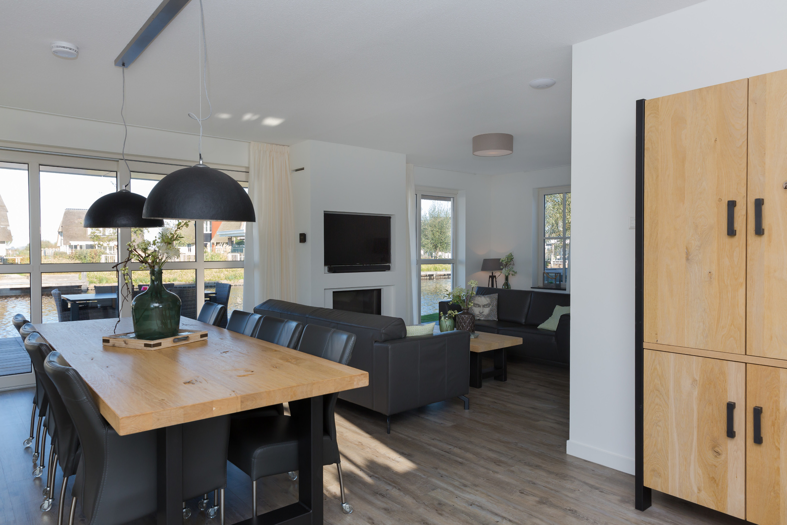 Als je hier verblijft met je gezin of vrienden, heb je volop ruimte dankzij drie royale slaapkamers, een gezellige bedstee voor de kinderen en twee moderne badkamers. De woonkamer is sfeervol ingericht met een luxe gashaard en twee comfortabele banken, perfect voor een knusse avond binnen. De open keuken is volledig uitgerust met onder andere een vaatwasser, Nespresso en filterkoffiezetapparaat, en aan de ruime eettafel geniet je samen van lange, gezellige diners. In de aanbouw vind je bovendien een eigen wellnessruimte met Finse sauna en douche — hoe fijn is dat na een dag op het water?