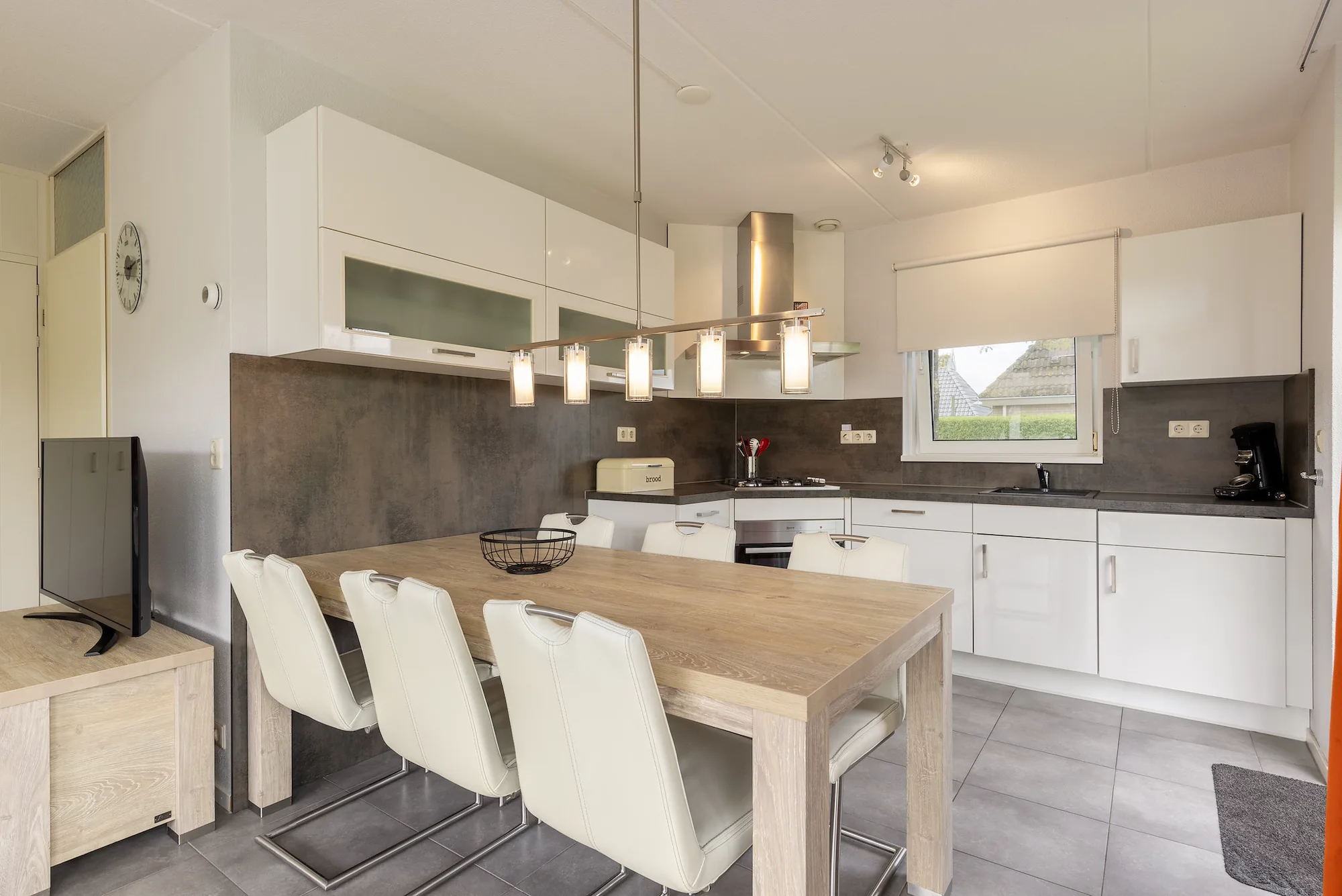 Als je hier verblijft met je gezin of vrienden, heb je alle ruimte. De woonkamer is licht en gezellig ingericht, met een zithoek en televisie. In een apart hoekje vind je een knusse bedstee voor twee volwassenen – perfect om ’s avonds in weg te kruipen! De open keuken met eethoek is compleet uitgerust met een vaatwasser, combimagnetron en koelkast met vriesvak. De badkamer beneden heeft een ligbad en regendouche, en er is een apart toilet. Handig: in de berging staan een wasmachine en droger tot je beschikking.