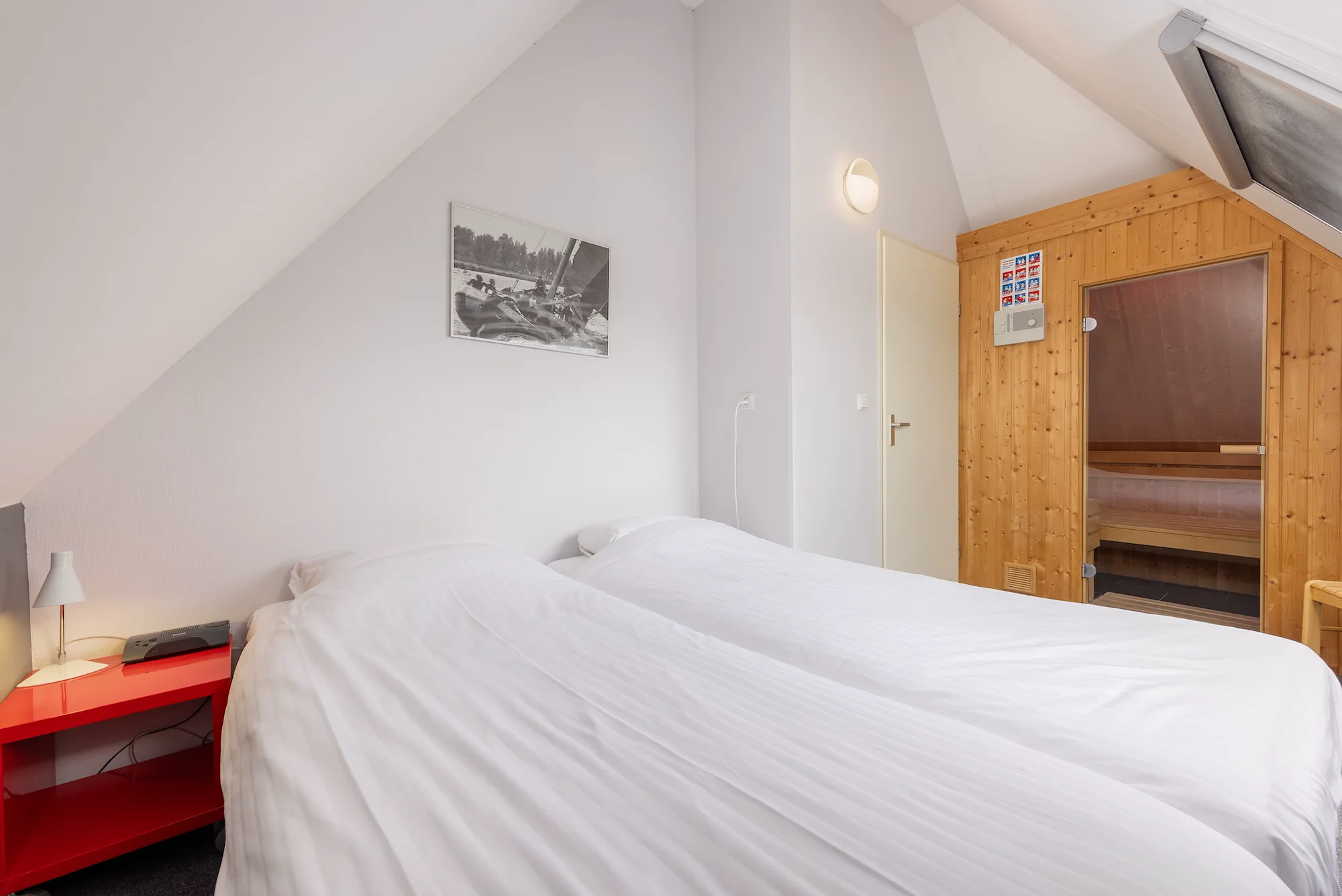 Op de eerste verdieping zijn twee slaapkamers met comfortabele boxspringbedden. Eén van de kamers heeft zelfs een traditionele sauna – ideaal na een dag op het water of een fietstocht door De Alde Feanen! Buiten geniet je van een ruim terras met tuinmeubilair en parasol, direct aan het water. Neem je eigen boot mee? Dan kun je die gewoon aanleggen bij je eigen privé aanlegsteiger. Wat een luxe! En met gratis wifi en parkeergelegenheid bij de bungalow is aan alles gedacht.